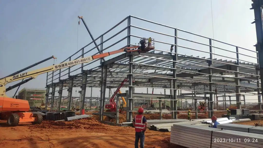 “双节期间,我们工人没有休息,一直持续施工,目前主体结构已经完成83%,主干道的施工完成了50%。现在看到的作业环节是屋面檩条安装,计划在10月15日进行屋面瓦施工,预计10月30日完成主体结构封顶。”保税物流中心(B型)项目台湾av 负责人廖志刚介绍。